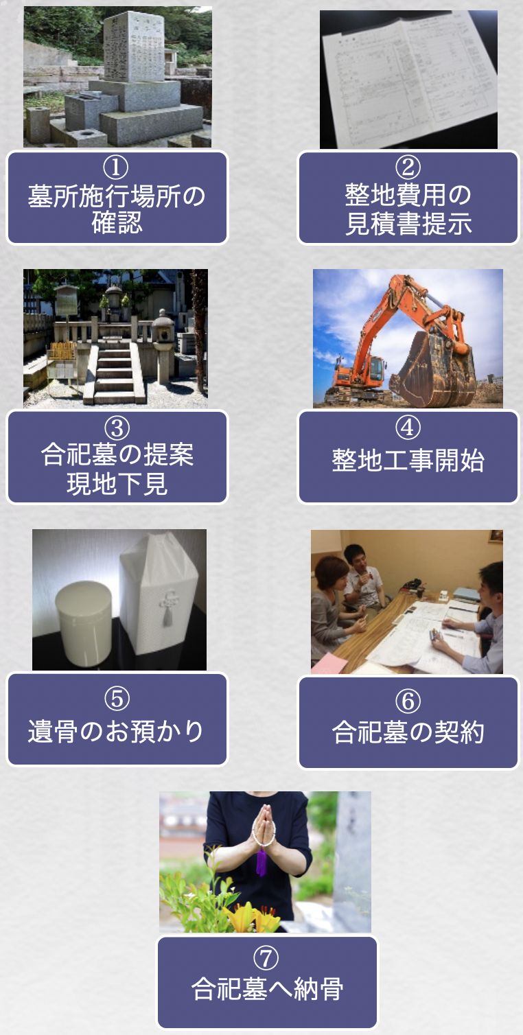 ・整地工事のお見積書や合祀墓の資料をご希望の場合、複数社から取り寄せる事も可能です。