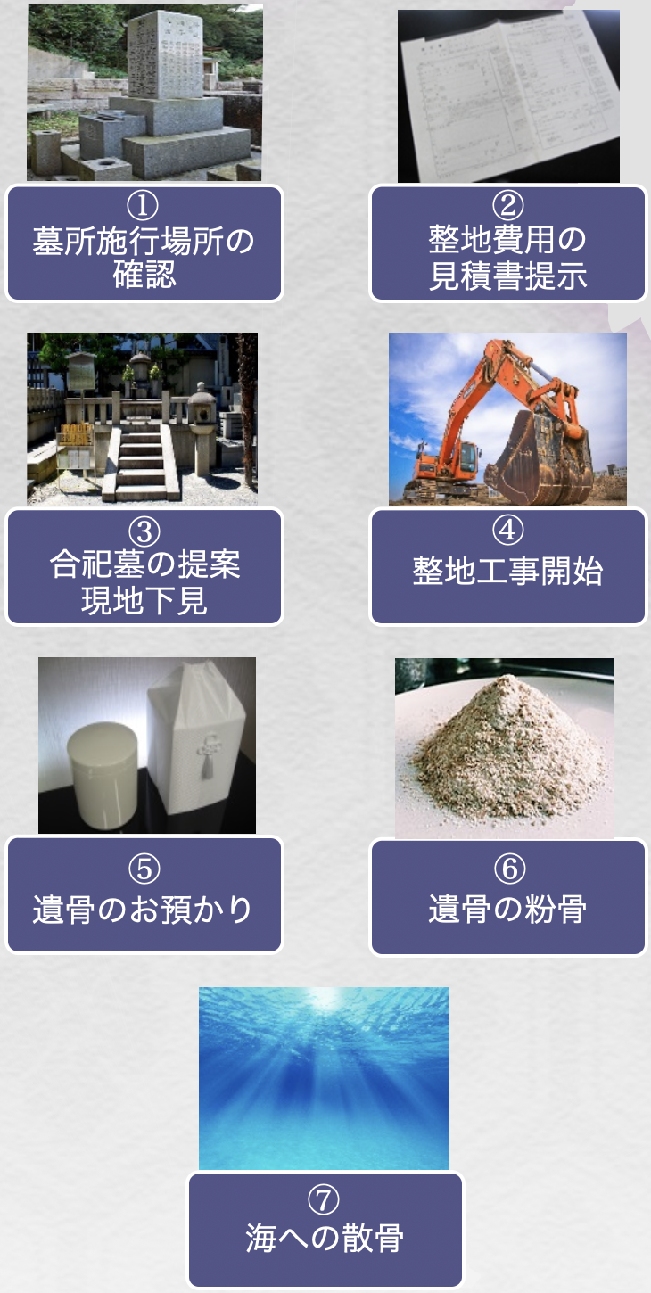 ・墓所の敷地面積や外構/基礎の状況、また、遺骨の柱数により整地工事費は異なります。